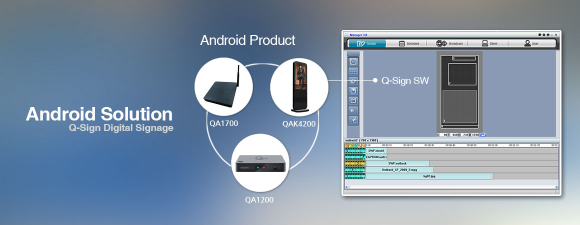 Image. Flash, Video와 같은 다양한 컨텐츠를 지원할 뿐만 아니라, Web과 Android Play Store도 이용하여 수많은 컨텐츠를 이용가능하며, 투명자막과 RSS도 가능하여 활용도 높은 Solution을 제공합니다. 지금 다양한 컨텐츠를 사용할 수 있는 Android Solution을 만나보세요.